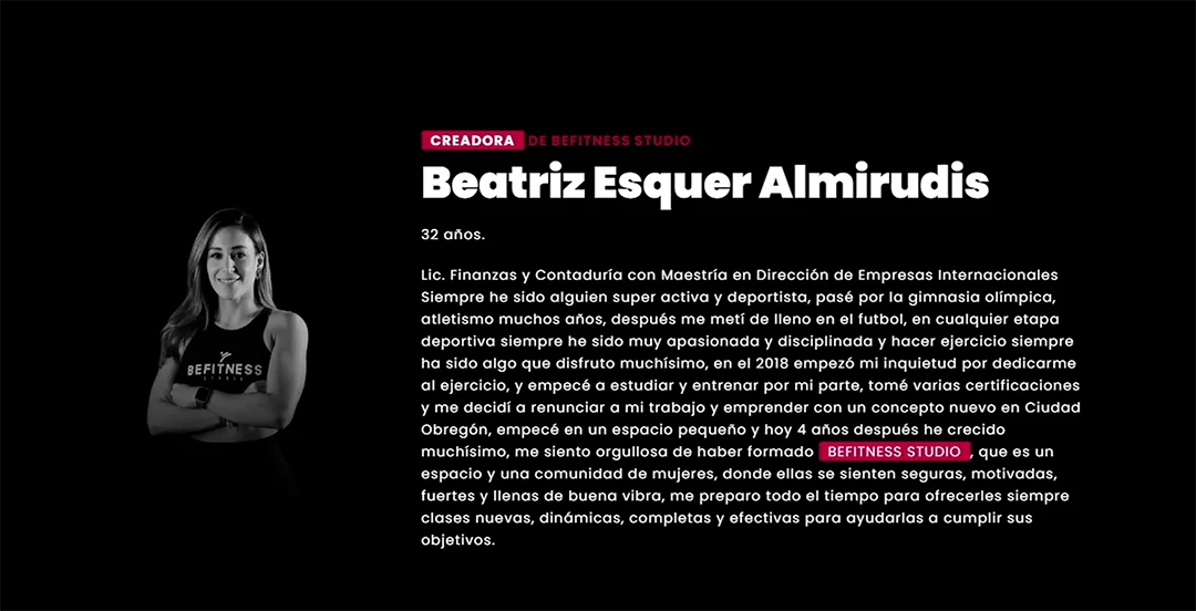 El estudio mantiene un estilo único que pernea en sus clientes, por ello, buscamos trasladar la esencia del lugar físico a su nuevo espacio virtual donde, además de consultar información relacionada a las clases presenciales, el usuario podrá acceder a clases en línea por medio de una plataforma ligada al sitio web.